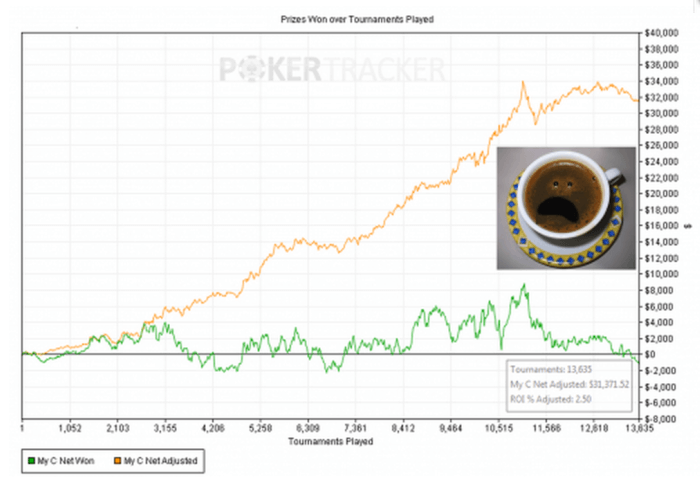 Не наигрывать дистанцию. Самым глупым решением в вашей покерной карьере будет взять обучение, посмотреть тонные ВОДов и мало играть. Вы просто не сможете побить дисперсию, которая даже при идеальных знаниях она будет очень сильно вас шатать. Если же вы решили действительно много заниматься покером, то вам необходимо играть как минимум 300 турниров в месяц. Только тогда смогут прийти настоящие результаты.