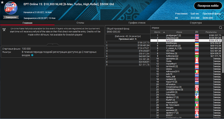 Читать также: Никита Бодяковский выиграл турнир хайроллеров EPT Online за 10 300$