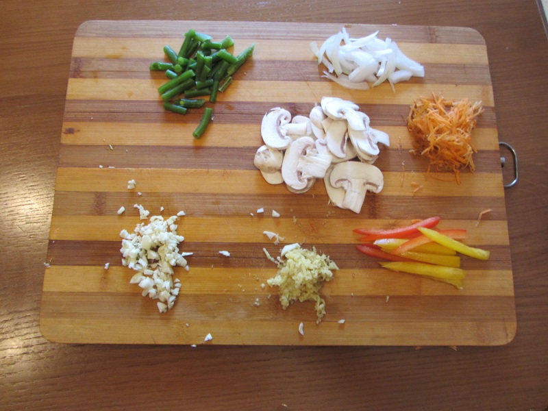 Для начала режем все овощи, а морковь и имбирь натираем на терку.