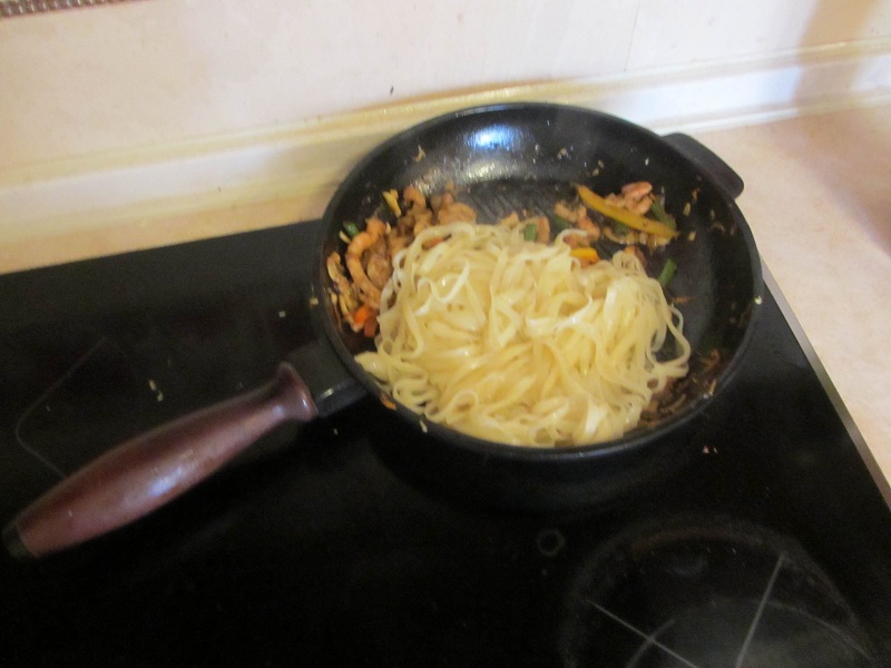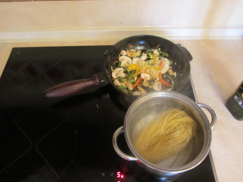 Параллельно с этим отвариваем нашу лапшу до состояния альденте.