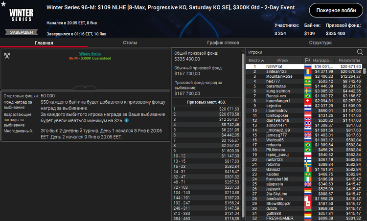 Недавно на Старзах завершился очередной турнир Winter Series. В этот раз ивент Winter Series 96-M Saturday KO с относительно скромным бай-ином в 109$.