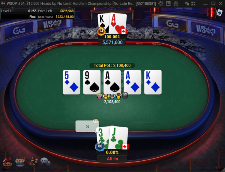 Всего в хедз-ап-турнире с призовым фондом 1,24 млн долларов сыграло 128 игроков, 16 из которых попали в призы события: