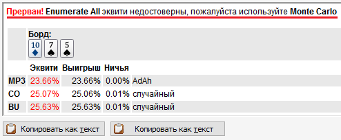 «Прерван! Enumerate All эквити недостоверны, пожалуйста используйте Monte Carlo».