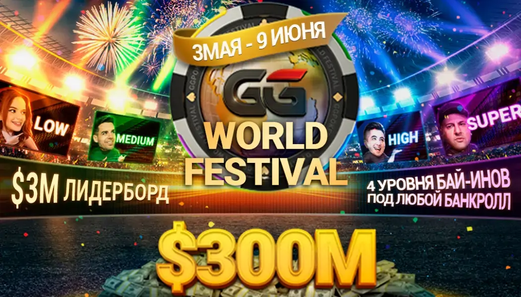 ПОКЕРОК объявляет о возвращении GG World Festival – самой крупной серии турниров в истории онлайн-покера. Серия пройдёт с 3 мая по 9 июня с впечатляющей гарантией $300 000 000. Это крупнейший общий призовой фонд, когда-либо заявленный в рамках одной онлайн-серии. Прошлогодний рекорд составил $250 000 000.