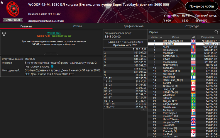 Глеб "Ti0373" Тремзин стал раннер-апом турнира WCOOP 42-M за 530$