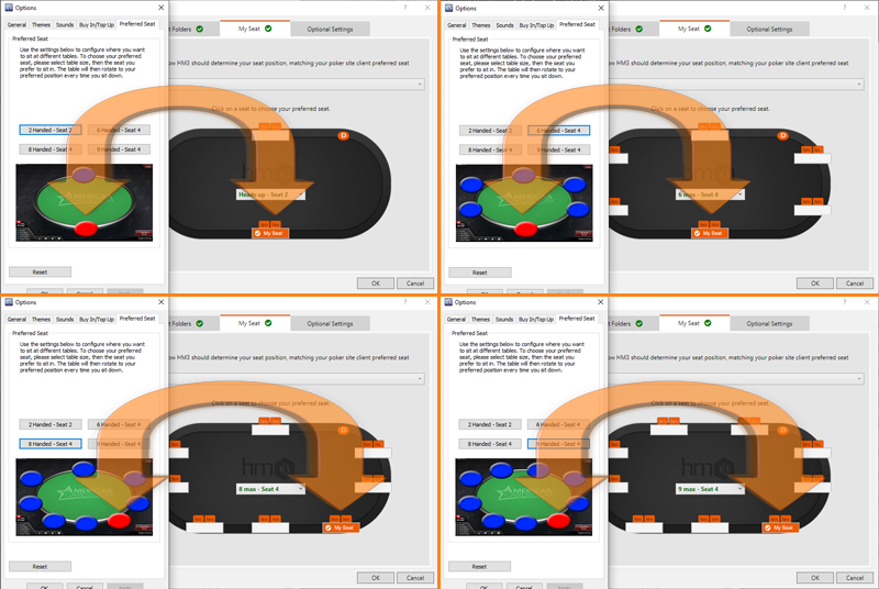 - Некоторые покер-румы, такие как PokerStars, записывают распределение мест в файле пользователя. Для этих покер-румов будет работать опция None Use Hand History Seat (не использовать место при анализе истории раздач).