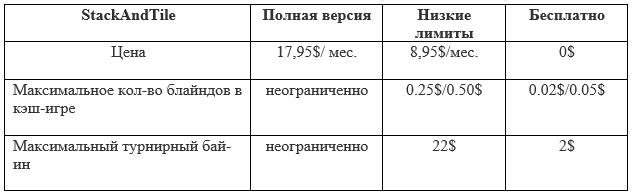 StackAndTile – платная программа для мультитейблинга, но есть возможность использовать её бесплатно, для этого нужно ознакомиться со следующими данными в таблице: