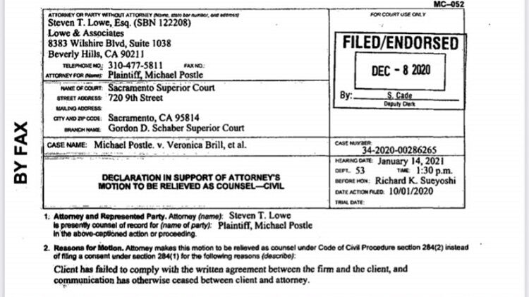 О том, что адвокаты Постла отказались представлять его в суде сообщил другой адвокат, который представлял в суде "пострадавших" от предполагаемого мошенничества Майкла игроков.