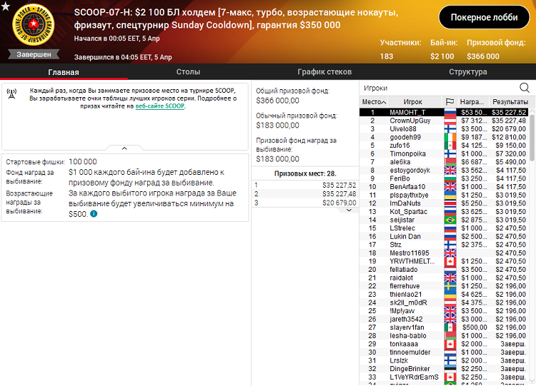 На PokerStars завершился один из первых турниров в рамках крупнейшей ежегодной старзовской серии SCOOP.