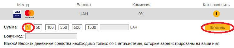 Уже сейчас вы можете пополнять свой депозит от 1 гривны напрямую с платёжных гривневых карточек Mastercard и Visa.