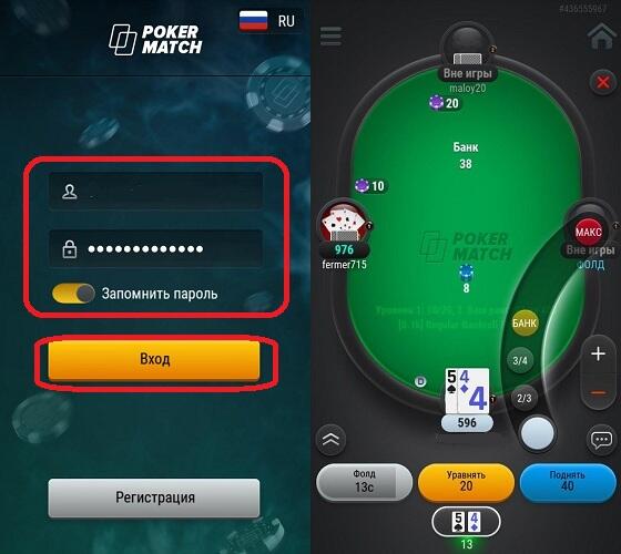 - Ввводим свой логин и пароль и можно смело приступать к игре. Если у вас ещё нет аккаунта на ПокерМатч, то нужно пройти процедуру регистрации.