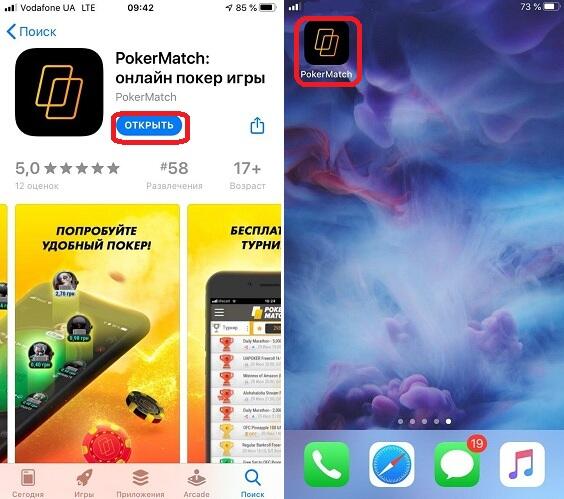 ![Открываем приложение ПокерМатч на своём мобильном устройстве]()