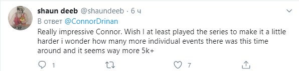Перевод: Это реально впечатляет, Коннор. Надо было и мне играть эту серию, что усложнить тебе задачу. Интересно, насколько больше отдельных ивентов было в этот раз, кажется что ивентов 5к+ было намного больше.