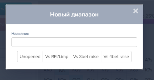 При выборе каждого из пунктов вам также нужно выбрать позицию, в которой вы играете раздачу. К примеру: Кат-офф, UTG и т.д.