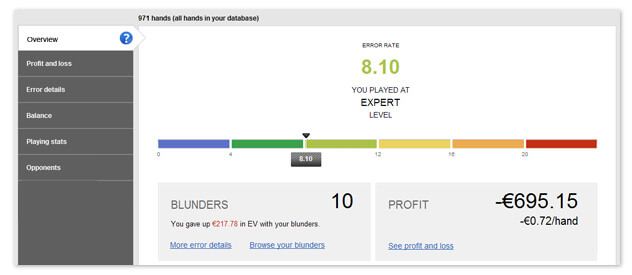 PokerSnowie покажет вам обзор проанализированных рук. Вы получите следующую информацию: