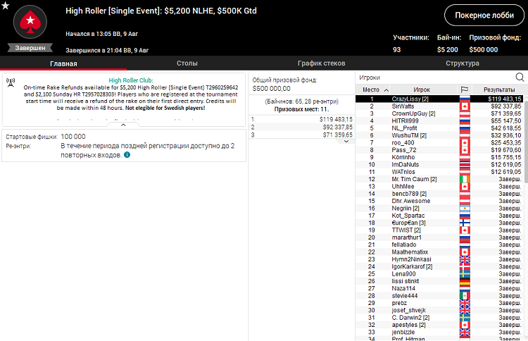 Российский игрок "CrazyLissy" выиграл ивент High Roller Club на Старзах