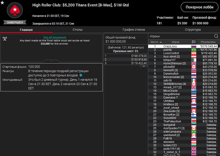Этой ночью завершился турнир High Roller Club Titans Event с бай-ином 5 200$ и гарантированными призовыми в размере 1 000 000$.
