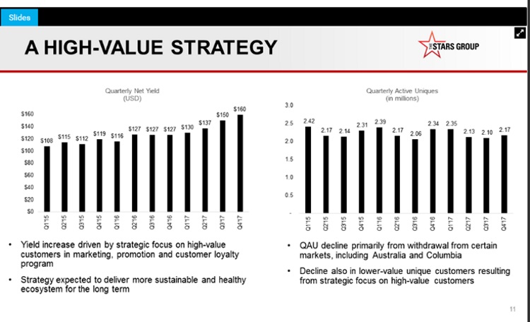 Руководство Stars Group также отметило успешность изменений в своей бонусной программе и введение Stars Rewards.