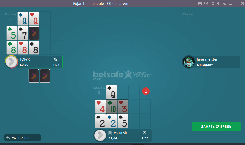 Играть в китайский покер на TonyBet можно было как за кэш-столами, так и в турнирах, сит-энд-гоу.