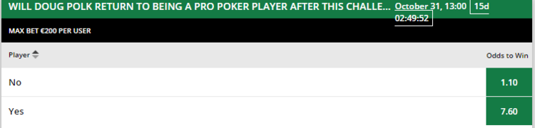 Возможно, ответ на этот вопрос зависит от того, как завершится исход баттла. В любом случае на это можно только гадать, что и предлагает нам сделать букмекер. Если вы поверите в возвращение Дугласа Полка и он это сделает, то умножите свои инвестиции практически в 8 раз.