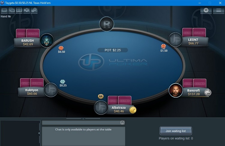 Ultima Poker обладает приятным, удобным и интуитивно понятным софтом, которым не могут похвастаться даже некоторые румы второго эшелона. Случаются небольшие баги, но их можно списать на новизну проекта. Также важно отметит, что рум не поддерживает программы для сбора статистики на оппонентов (Holdem Manager и Poker Tracker) и любых других вспомогательных программ, что может способствовать увеличению слабых игроков за столами.