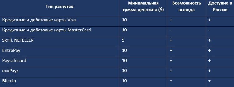 | 💳 Способы депозита | Visa, MasterCard, Skrill, Neteller, EntroPay |