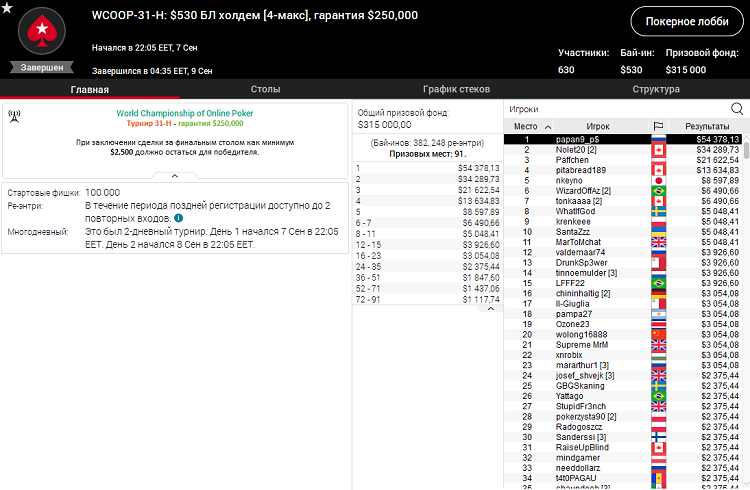 Виктор "papan9_p$" Устимов победил в 4-макс турнире на WCOOP