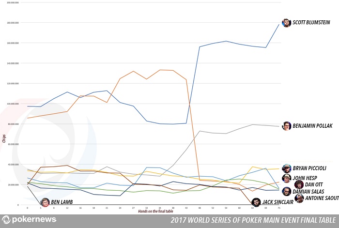 Таблица чипкаунта WSOP ME 2017